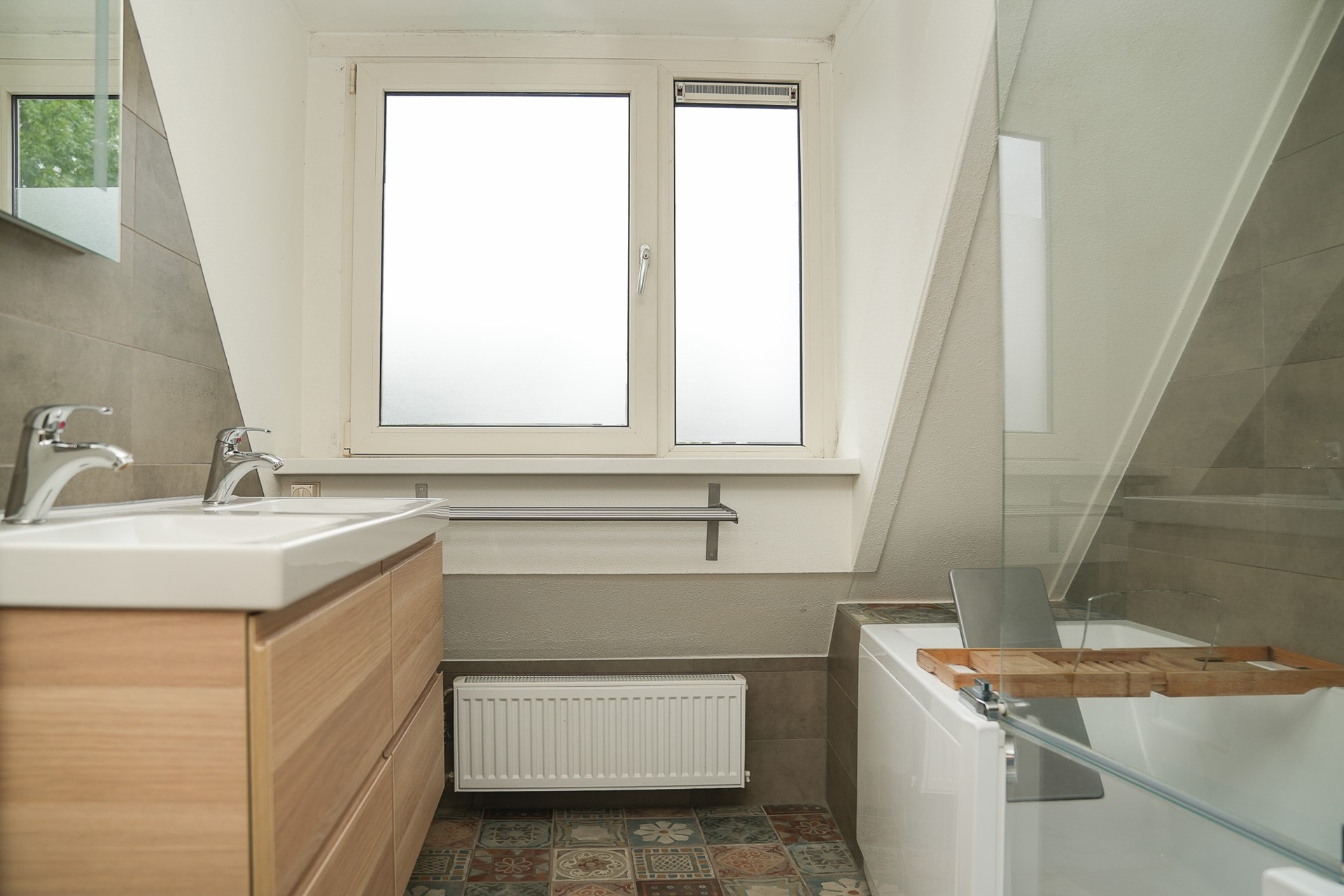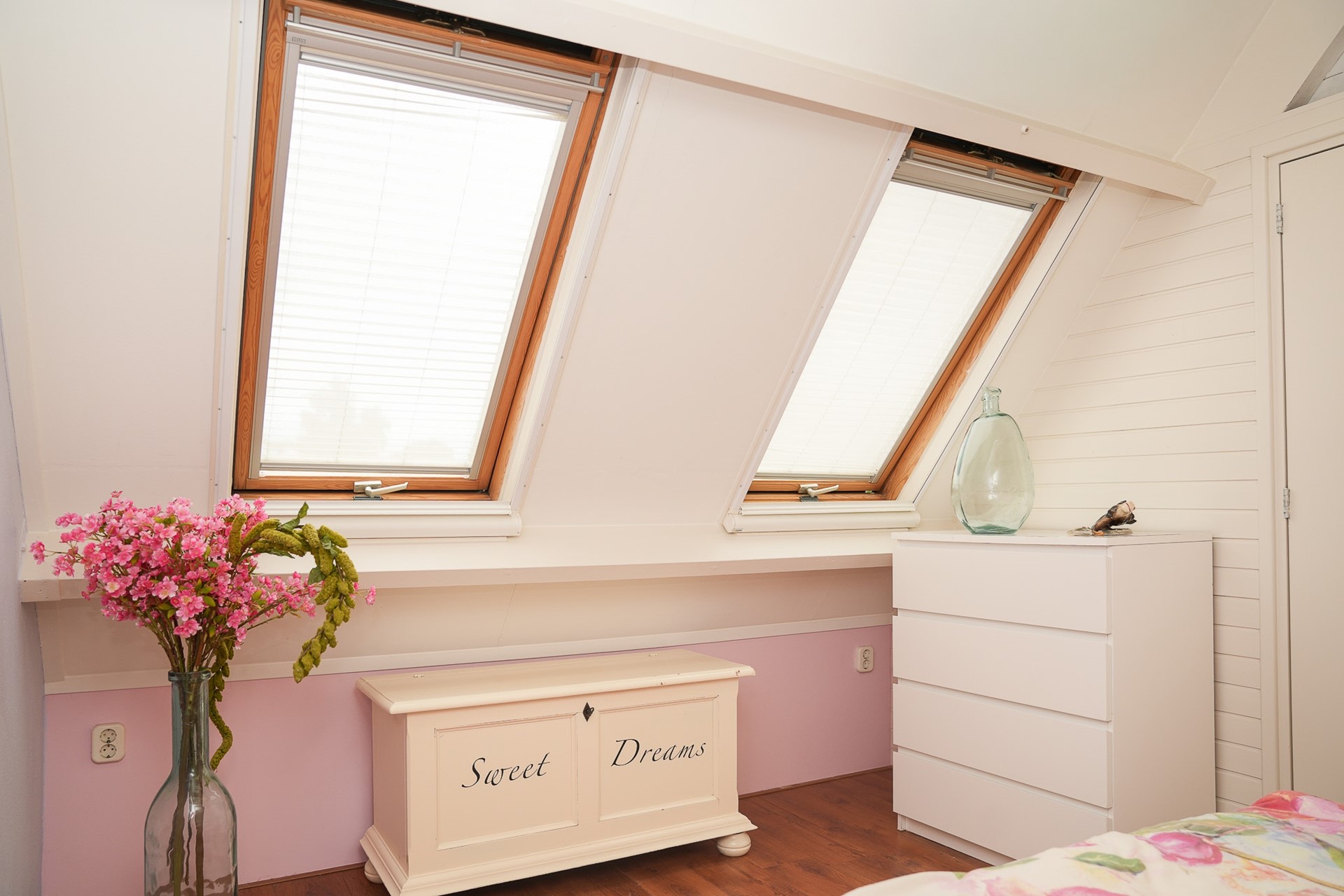 De tweede verdieping biedt ruimte aan een voorzolder met dakraam, de CV-opstelling (Vaillant 2021) en een vijfde slaapkamer met twee Velux dakramen en een nette laminaatvloer. Ideaal als extra slaapkamer, werkkamer of hobbyruimte.