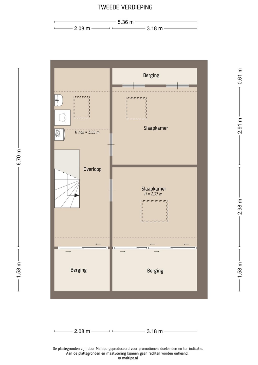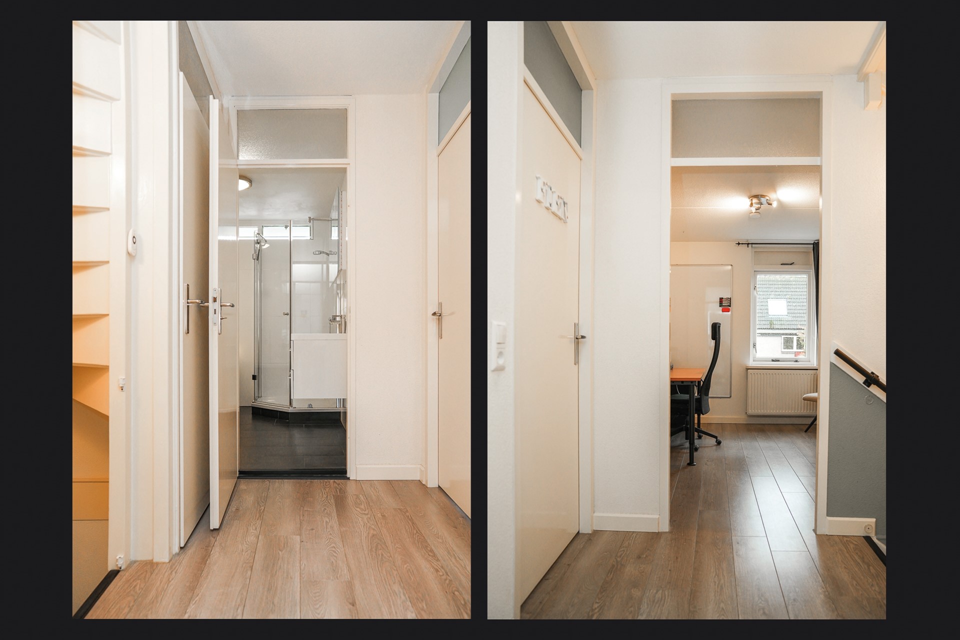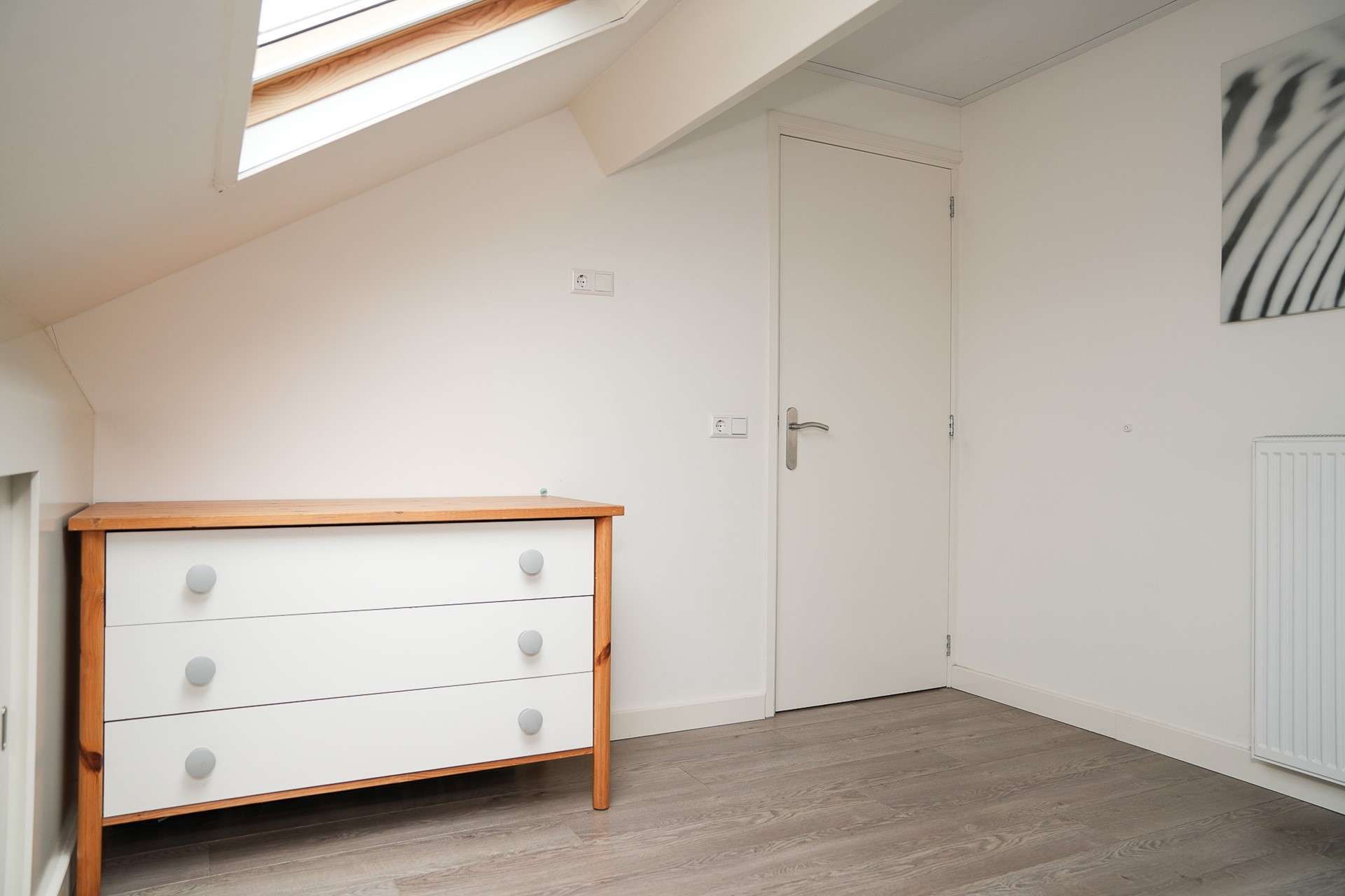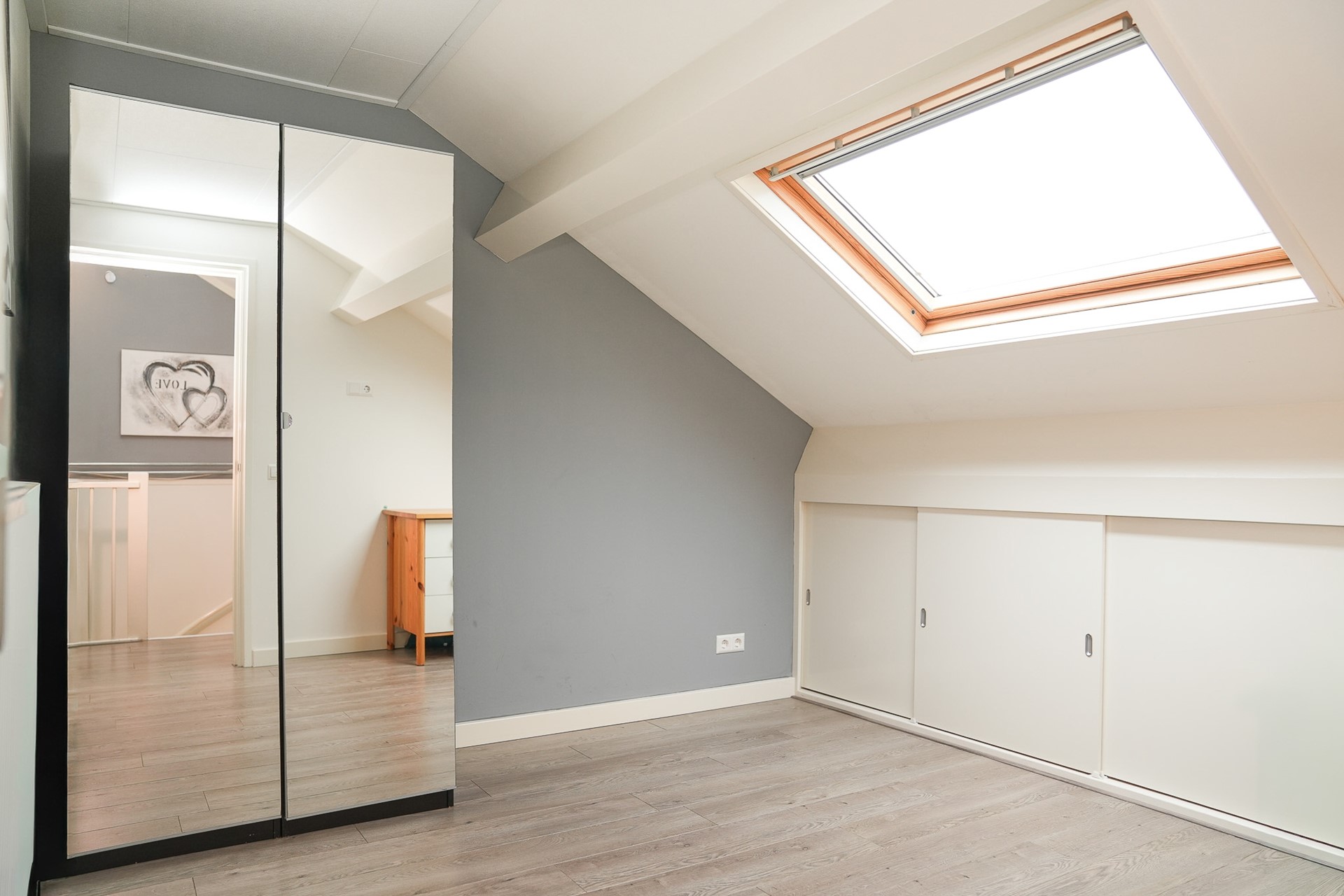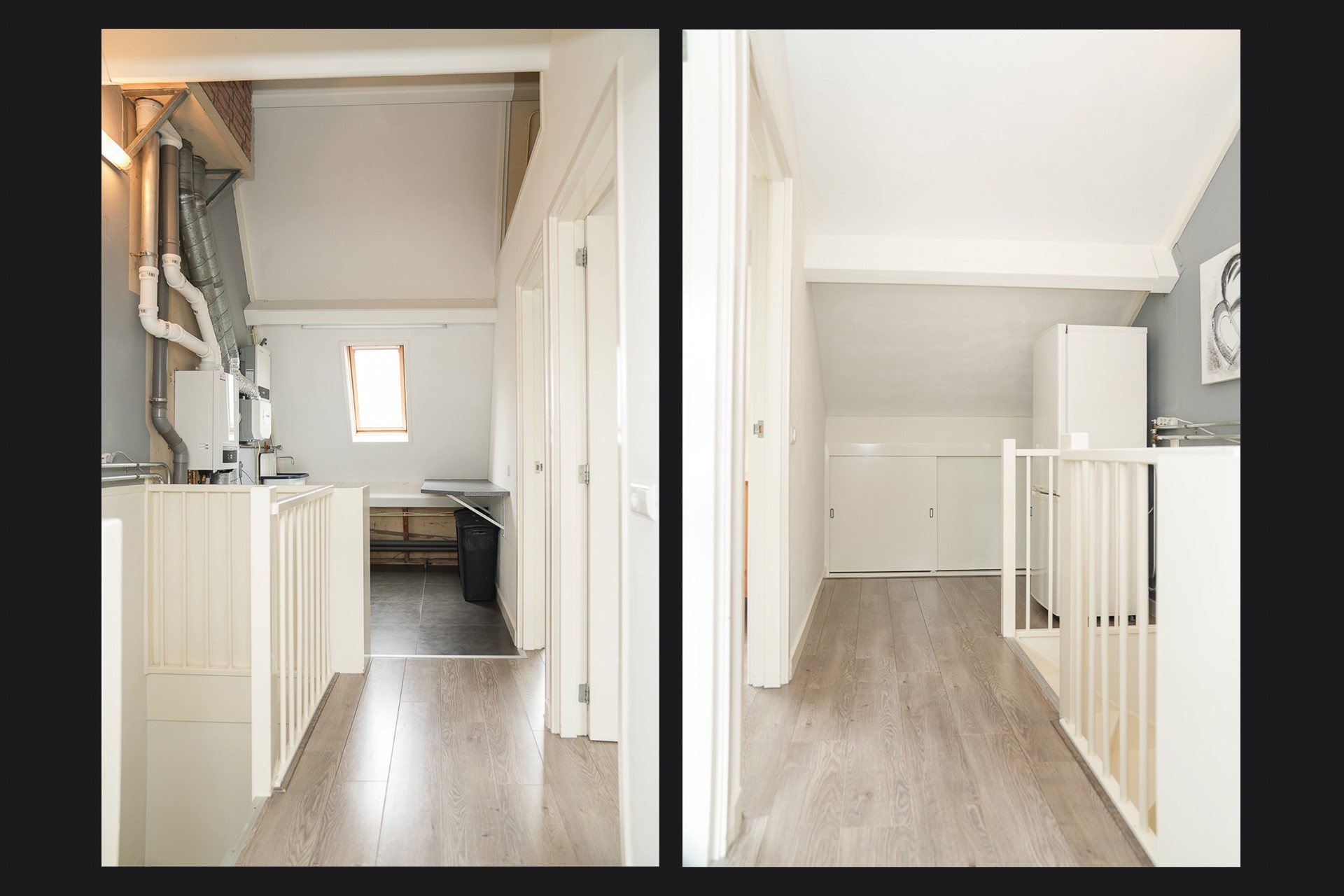 De tweede verdieping biedt nog eens twee extra slaapkamers, beide voorzien van groot Velux dakraam en laminaatvloer. Hier vind je ook de voorzolder met wasmachine- en drogeraansluiting, CV-opstelling (Nefit 2018), mechanische ventilatie unit en omvormer van de zonnepanelen. Boven de slaapkamers is bovendien een handige bergvliering aanwezig. De tweede verdieping is net afgewerkt en voorzien van bergschotten.